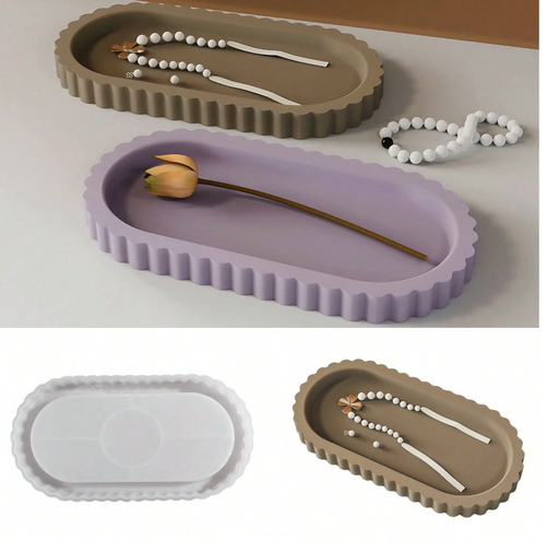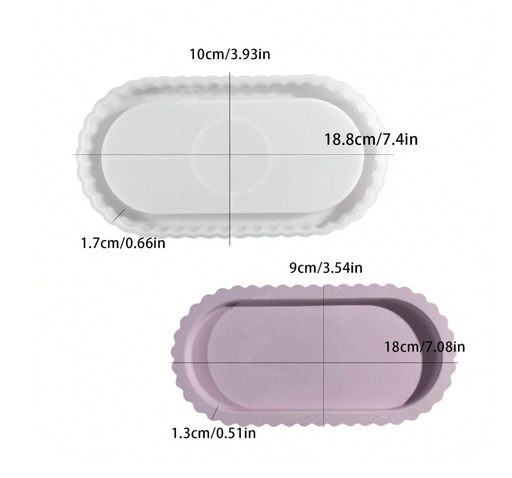 قالب سيليكون على شكل صينية بيضاوية بحواف دانتيل لفن الجيسمونيتي